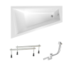 Aszimmetrikus kád akrilból, anyagvastagság 5 mm. A kád megnevezése - bal oldali tájolás. A kád térfogata 200 liter. Szifonnal, túlfolyóval és lábakkal együtt.