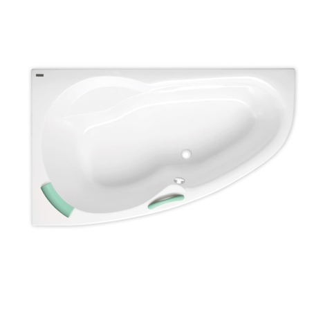 Asszimetrikus kád akrilátból. Bal oldali tájolás. A kád űrtartalma 170 liter. Csomagolás fogantyú, lábak és fejtámla nélkül.