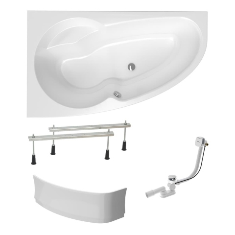 Aszimmetrikus kád akrilból készült, anyagvastagsága 3,2 mm. A fürdőkád megnevezése - bal oldali tájolás. A kád térfogata 170 liter. Szifonnal, túlfolyó töltéssel, lábakkal, előlappal és oldallappal együtt.