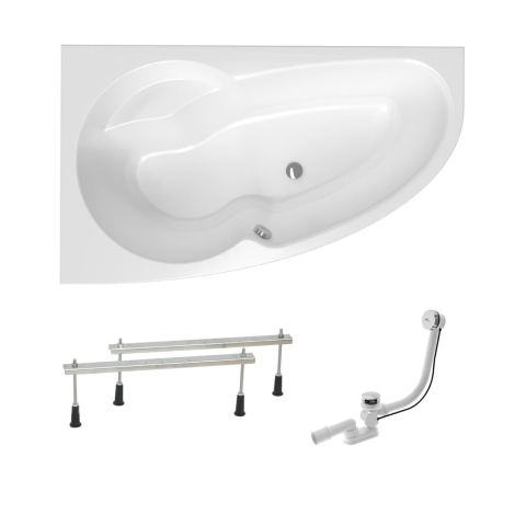 Aszimmetrikus kád akrilból, anyagvastagság 3,2 mm. A kád megnevezése - bal oldali tájolás. A kád térfogata 190 liter. Csomagolás szifonnal és lábakkal.