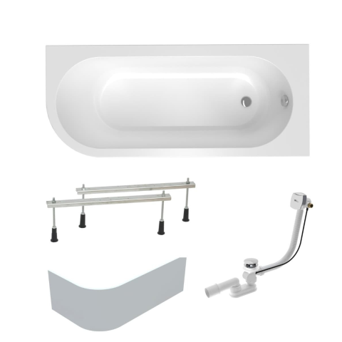 Aszimmetrikus kád akrilból készült, anyagvastagsága 5 mm. A fürdőkád megnevezése - jobb oldali tájolás. A fürdőkád térfogata 195 liter. Szifonnal, túlfolyó töltéssel, lábakkal, előlappal és oldallappal együtt.