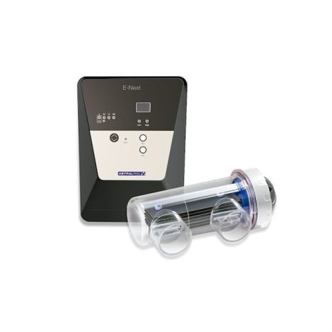 E-NEXT, sós elektrolízis készülék polaritás váltóval. Korszerű elektronikus vezérlés hosszú élettartamot biztosít a celláknak. Egyszerű kezelés, intenzitás állítás, áramlás érzékelés (gáz), alacsony üzemi sószint jelzése (4000 ppm-nél). Cella csatlakoz