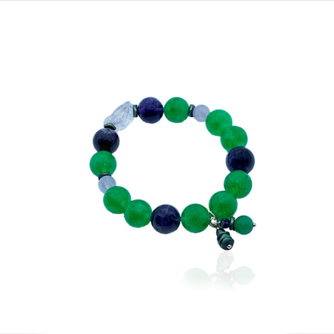 Az ásvány karkötő három féle kőből áll ametisztből, aventuninból és hematitból. Az ásványkövek különleges összefüggéseit is felfedezték, melyek a lelki szintű gyógyászatokban alkalmazott kellékek. Minden karkötő egyedi tervezésű darab, így sok mondanivaló