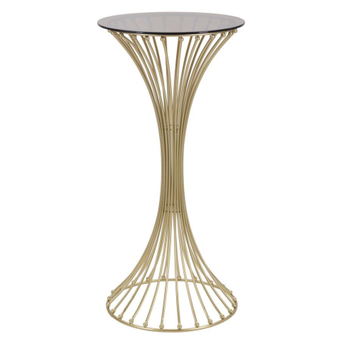 Elegáns, modern fém és üveg dohányzóasztal - 50x103 cm Ez a stílusos dohányzóasztal tökéletes választás modern és elegáns otthonokba. A finom vonalakkal és elegáns gömbökkel díszített arany fémváz páratlanul harmonizál a füstös üveglap tetejével. A...