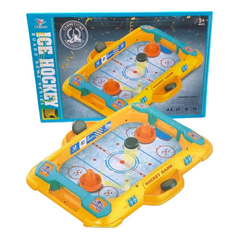 Az asztali jégkorong zseniális próbára teszi a reflexeid és képességeid. Nézz szembe egy barátoddal, és az ütővel üsd a korongot az ellenfél kapujába. Jellemzők: Minden játékosnak lökést kell használnia a korong eltalálásához oly módon, hogy gólt szerezze