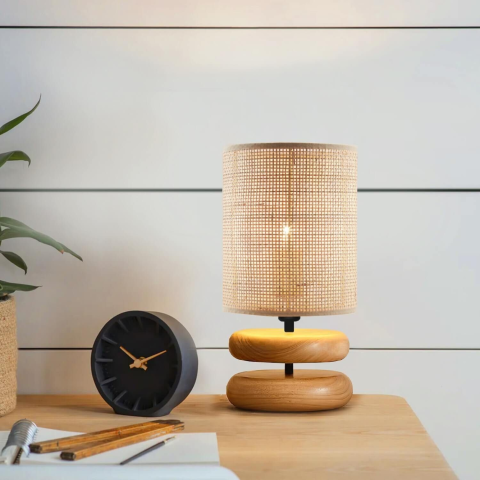 Bambusz Asztali Lámpa - Természetes fény az otthonodban 💡 Ez a fából készült asztali lámpa bambusz lámpabúrával tökéletes kiegészítője lehet bármelyik szobának, természetes és meleg hangulatot teremtve. Főbb jellemzők: 🪵 Fából készült test: Tartós...