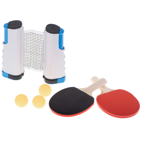 Nagyszerű asztalitenisz szett. A sport javítja a fizikai erőnlétet és fejleszti a gyermekek intelligenciáját. Könnyen összeszerelhető, max. 5 cm. A készlet tartalmazza: 2 ütő, 3 labda, háló. A háló méretei: 170x14cm. Az ütő méretei: