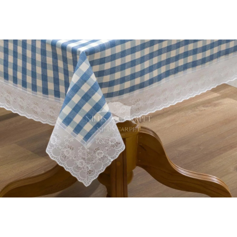 Teljes Asztalterítő Ariana csipkés Kék kockás 122x152cm termékleírás