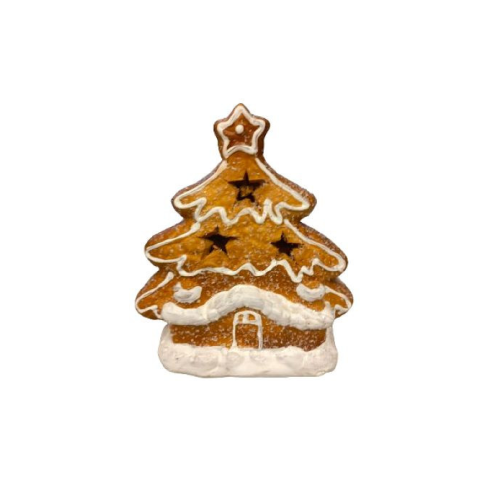 Hangulatos mécsestartó mézeskalács fenyőfa formában, tökéletes ünnepi dekoráció. Kiváló minőségű kerámiából készült, finom részletekkel díszítve. Tökéletes választás otthonának meleg hangulatához.