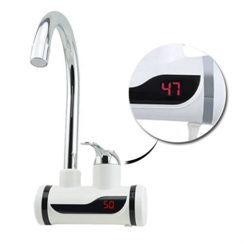 Falra szerelhető átfolyós vízmelegítő A beépített LCD kijelzőn olvasható a kifolyó víz hőmérséklete 5 másodperc alatt akár 60 °C-os hőmérsékletet is elérhet Használata igazán egyszerű 360 fokban elforgatható, így ideális egy- vagy kétmede