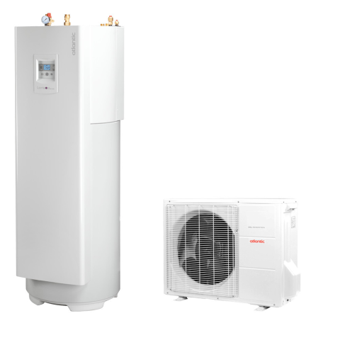 Atlantic Loria Duo levegő-víz hőszivattyú HMV tárolóval 8 kW A hőszivattyú egy olyan készülék, amely a levegőt, a víz hőenergiáját vagy a geotermikus energiát használja fel arra, hogy a hőmérsékletet a megfelelő szintre emelve lássa el egy épület fűtését