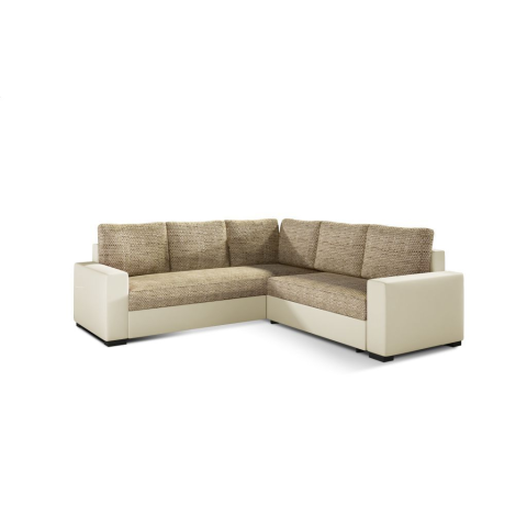 Atlasz sarokkanapé 130x200cm-es fekvőfelülettel Bézs bőr - világosbarna zsákszövet, Jobbos bútor termékleírás