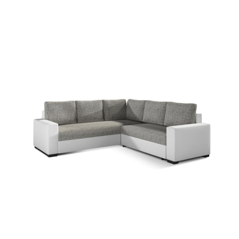 1 kép Atlasz sarokkanapé 130x200cm-es fekvőfelülettel Fehér bőr - világosszürke zsákszövet, Balos