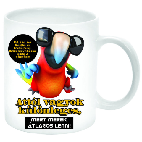 Tedd fel kérdésed a(z) Attól vagyok különleges, hogy merek átlagos lenni – papagájos bögre (feliratozható) termékről!