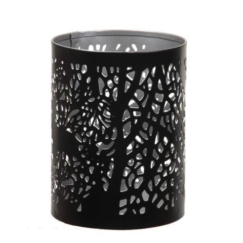 Áttört mintás mécsestartó fekete-ezüst Átmérő: 8cm Magasság: 10cm