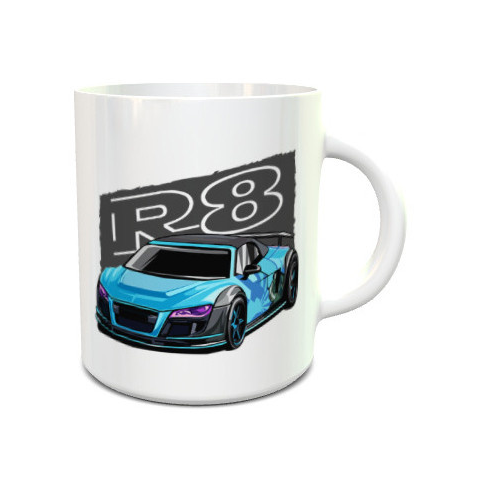 Audi ajándékok, Audi R8 bögre. Bögre férfiaknak és nőknek egyedi Audi R8 grafikával. Ajándék a Audi R8 tulajdonosoknak és rajongóknak, a sebesség megszállottjainak. Egyedülálló bögre választékunkból válaszd ki a neked megfelelő színt vagy típust és mi kül