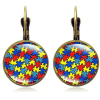 Színes puzzle mintás autizmus fülbevaló bronz alapra rögzítve, az autizmus támogatásának és tudatosságának jelképe. Tökéletes ajándék
