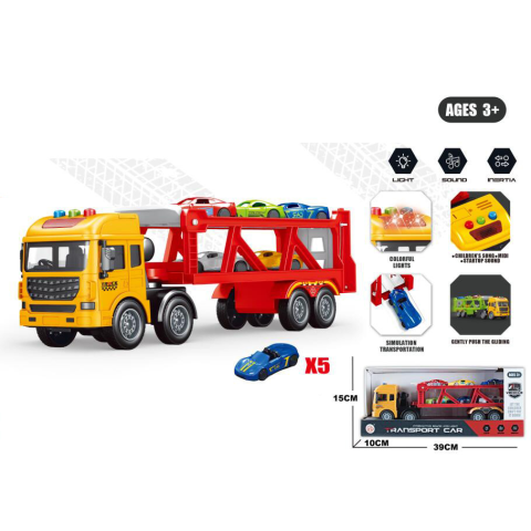 Ez a vagány autószállító kamion ideális választás minden kis autórajongónak! A 35 cm hosszú jármű 5 különböző színű kisautót tartalmaz, amelyeket könnyedén fel- és le lehet pakolni a kamion platójára. A játék nemcsak szó