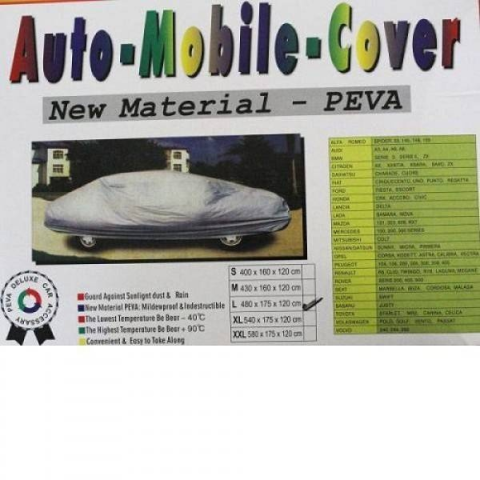 Autó védő ponyva LÚjfajta környezetbarát, nagy szakítószilárdságú anyagból készült.Külső belső használatra.Könnyű használhatóság.A ponyva alja gumírozott, így ezáltal egyszerű a felhelyezése.Hő, Víz, időjárás, kosz álló (pl.: madárürülék, fa gyanta)Mérete: 460x175x120 cmVigyázat:A ponyva használata -10 és 30 celsius fok között javasolt!Friss fényezésnél, waxolásnál és polírozásnál csak a teljes száradás után használható. Éles, hegyes t