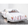Autódísz készlet, a készlet tartalma: rózsarany Just Married transzparens (hossza kb. 77 cm, magasság kb. 20 cm), rózsa arany bojtfüzér (magasság kb. 30 cm, hossza kb. 1,5 m, csináld magad termék), fehér bojtfüzér (magasság kb. 30 cm, hossza kb. 1,5 m