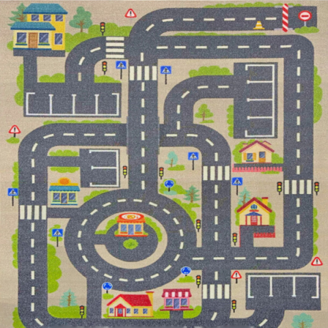 Autópálya gyerekszőnyeg 133x180cmA vidám autópálya mintás gyerekszőnyeg garantáltan elvarázsolja a legkisebbeket, hiszen színes, játékos mintázata kalandokra hív minden kis sofőrt! A város, utak és parkolók mintája fejleszti a gyerekek fantáziáját és kreativitását, miközben biztonságos és kényelmes játékfelületet nyújt.A csúszásgátló hátoldal gondoskodik arról, hogy a szőnyeg stabilan maradjon a padlón, így a gyerekek biztonságban játszhatnak rajta. A