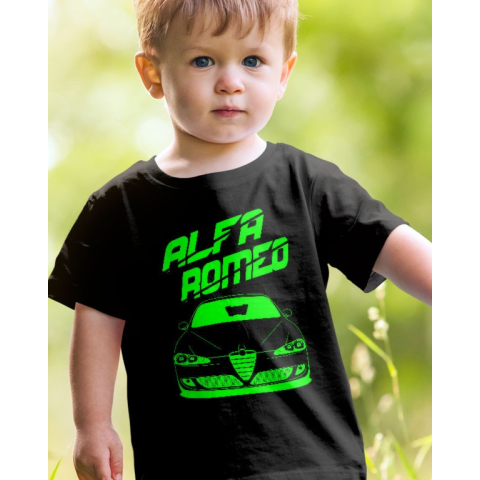 Autós gyerek póló, Alfa Romeo feliratos póló. Autós póló alfás gyerekeknek. A póló többféle fazonban és színben rendelhető, Alfa Romeo felirattal és autó mintával készítjük. 100 % pamut póló, a minta tartós, a póló 40°C-on mosógépben mosható. Minőségi