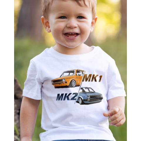 Autós meglepetés, Volkswagen Mk1 Mk2 gyerek póló. Egy igazi retro autó rajongó gyereknek kötelező viselet egy ilyen póló. Rendeld meg egy olyan ismerősödnek, akinek születésnaprója vagy névnapja van. Különböző méretű és színű pamut pólóra kérhető minta.