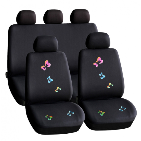 2 kép Autós üléshuzat szett - pillangós / fekete - 9 db-os - HSA009