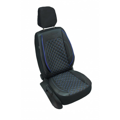 1 kép Autósüléshuzat-készlet, univerzális, első-hátsó, osztott ülés, fekete, kék varrással, ecobőr