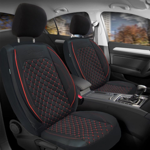 1 kép Autósüléshuzat-készlet, univerzális, első-hátsó, osztott ülés, fekete, piros varrással, ecobőr