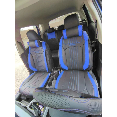 1 kép Autósüléshuzat-szett, fekete és kék ecobőr, univerzális, első-hátsó