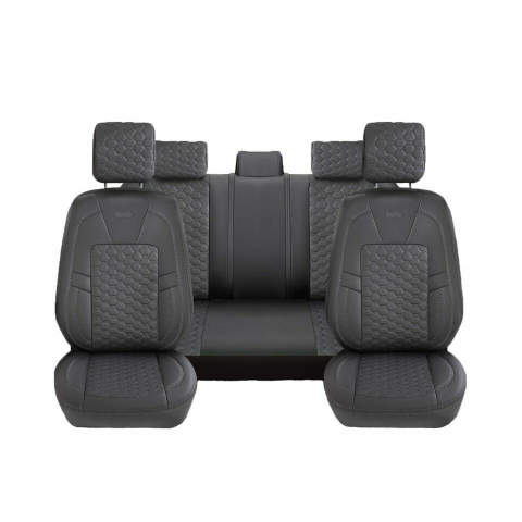 1 kép Autósüléshuzat-szett, fekete és szürke ecobőr, univerzális, első-hátsó, Diamond Design