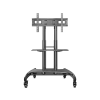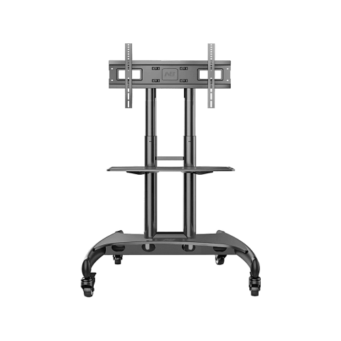 Univerzális görgős kijelző állvány 32" - 70" (81 - 177 cm) méretű televíziókészülékekhez. Tartozékpolc a kiegészítőknek. TV magasságállítás. A kiváló minőségű anyagok nagyon szilárd és tartós szerkezetet eredményeznek. Kábelelrejtő rendszer. Vesa szabványnak megfelel. Konferenciatermekbe, iskolákba, kiállításokba és magáncélra is tökéletes. Négy kerékkel rendelkezik, reteszelő funkcióval.