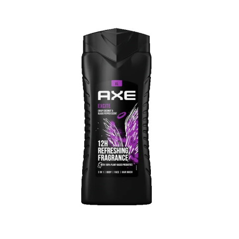 3IN1: HASZNÁLD TESTRE, ARCRA ÉS HAJRA EGYARÁNT Az Axe Excite tusfürdőtől garantáltan férfias illatod lesz, miközben frissítő élményt nyújt.