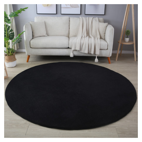 SKY kör alakú szőnyeg fekete színben, 200cm átmérővel. A strapabíró szintetikus szálból készült szőnyeg 7mm vastag, amely kellemes komfortérzetet nyújt minden lépésnél. A kör szőnyegek remekül lágyítják a tér hangulatát, különösen jól mutatnak kerek aszta