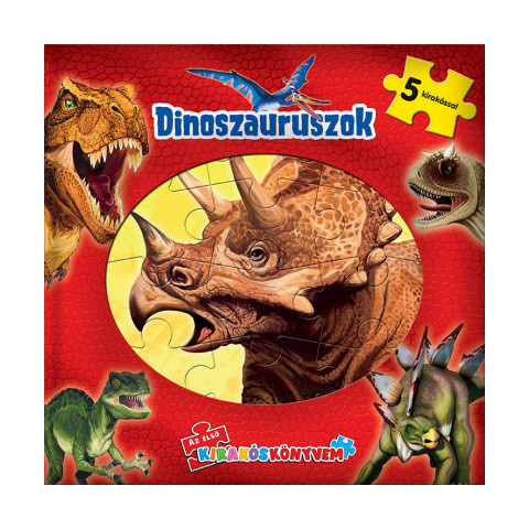 Vajon hol a helye a darabkáknak? Rakd össze a dínókat ábrázoló kirakósokat, és megtudod! A könyvben található képek a segítségedre lesznek. Ha elkészültél, olvasd el a történeteket, és keltsd életre a jeleneteket! Az öt kirakóshoz tartozó darabkák hátuljá