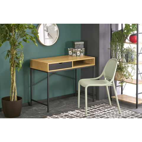 méretek: 95/48/76 cm, anyag: laminált forgácslap - melamin / porfestett acél, szín: arany tölgy / fekete