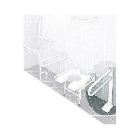 B-4313 felhajtható állványos kapaszkodó B-4313 felhajtható állványos kapaszkodó A felhajtható kapaszkodó WC ülőke mögötti falra szerelve a leülés és felállás, kerekesszékből történő átülés megkönnyítése; vagy mosdókagylók mellé szerelve kapaszkodásra