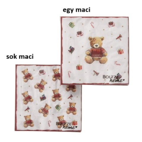B.G.2059796 Papírszalvéta 33x33cm, 20db-os, piros pulcsis macival, Bailey papírárú, csomagoló és tárolóeszköz árgrafikon