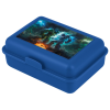 Stílusos kék műanyag uzsonnás doboz robot mintával, amely ideális a sci-fi rajongóknak. Praktikus zár és testreszabható elválasztók a megfelelő ételelrendezéshez.