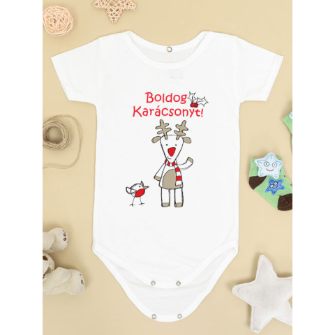 Ajándék karácsonyra karácsonyi baba body. Kívánj stílusosan Boldog Karácsonyt nagyszülőknek és szülőknek ezzel az aranyos, rénszarvas mintás baba bodyval! Tökéletes választás karácsonyi ajándéknak, de egy családi fotózáshoz is ideális ünnepi öltözék lehe