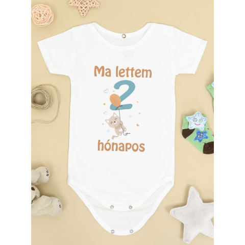 Baba ajándék, feliratos body, 2 hónapos lettem cicás body. A második hónap is egy új mérföldkő – ünnepeld meg egy különleges bodyval! A „Ma lettem 2 hónapos” felirattal és cuki cicás lufis grafikával készült darab egyedi ajándék lehet, vagy akár emlékezet