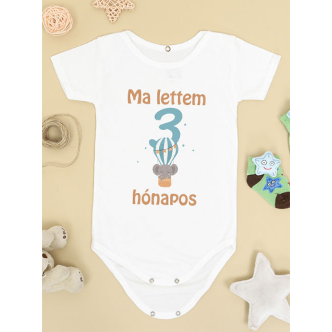 Baba ajándék, feliratos body, 3 hónapos lettem elefántos body tökéletes eszköze annak, hogy ezt az örömteli napot megörökítsd. A „Ma lettem 3 hónapos” feliratú darab igazán különleges meglepetés, amelyet egyedi ajándékként is adhatsz. Kiváló minőségű, feh