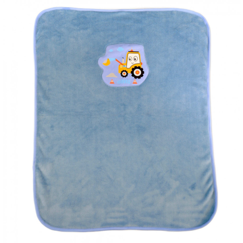 Pihe-puha, szinte felhőként öleli körbe a babát ez a kiváló minőségű, 100% poliészter wellsoft takaró, melynek lekerekített sarkai és pamut szegélye van. Az acélkék színű takaróban vagány munkagépes minta díszeleg, mely minden kisfiú számára izgalmas látv