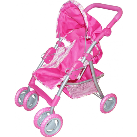 Babakocsi lábtartóval és kosárral - rózsaszín A legkényelmesebb luxus babakocsi, amit játékbabádnak elképzelhetsz! A babakocsi tolókarja állítható magasságú, a babakocsi első kerekei elfordulnak, hogy könnyebben kanyarodhass vele A Lábtartós és kosara