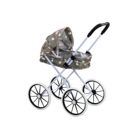 Baba kocsi nagy kerekekkel, összecsukható, csillagos, szürke A baba kocsi nélkülözhetetlen játék minden babarajongó számára. Egyedi szürke színű, nagy habkerekekkel és összecsukható napellenzővel felszerelt kocsi, amely nemcsak valósághű élményt nyújt a babák sétáltatásakor, hanem bájt is kölcsönöz és ösztönzi a kreatív játékot. A játék után a kocsi könnyen összecsukható, így tárolása és szállítása egyszerűbbé válik. Ez a tökéletes játék