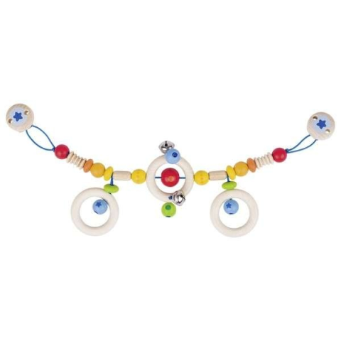 Fából készült babajáték, ami a csíptetővel a babakocsihoz rögzíthető A fém csíptető rozsdamentes, nikkelmentes fémből készül, a fa részek pedig nem mérgező, nyál hatására nem oldódó lakkréteggel kezeltek. Kézzel készített termék, tisztítása nedves ruhával. Kiváló minőségű, német termék, amely megfelel az európai biztonsági normáknak. Hossza: 40 cm.