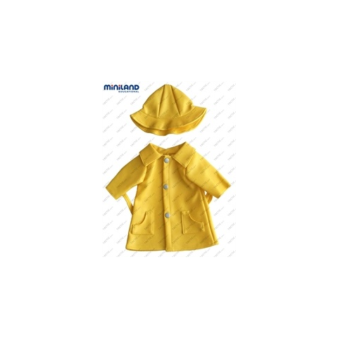 4 kép BABARUHA SÁRGA ESŐKABÁT ÉS KALAP 32CM-ES BABÁKRA, MINILAND