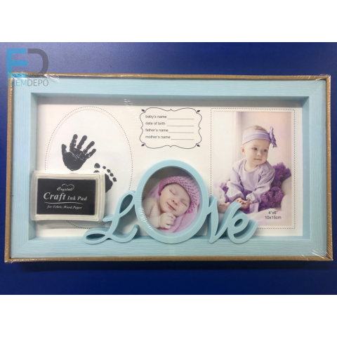 1 kép Babás " LOVE " képkeret kéz és láblenyomattal kék