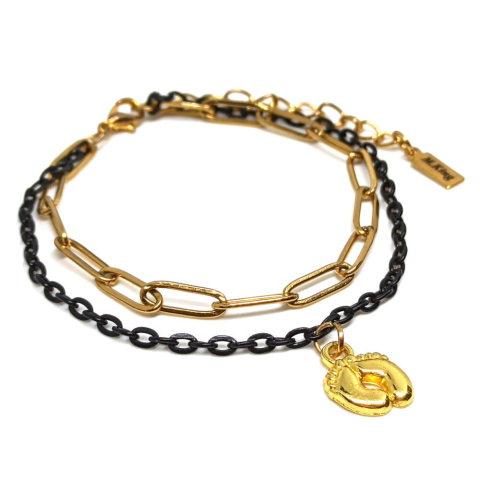 1 kép Babatalp charmos dupla karkötő, arany-fekete színű